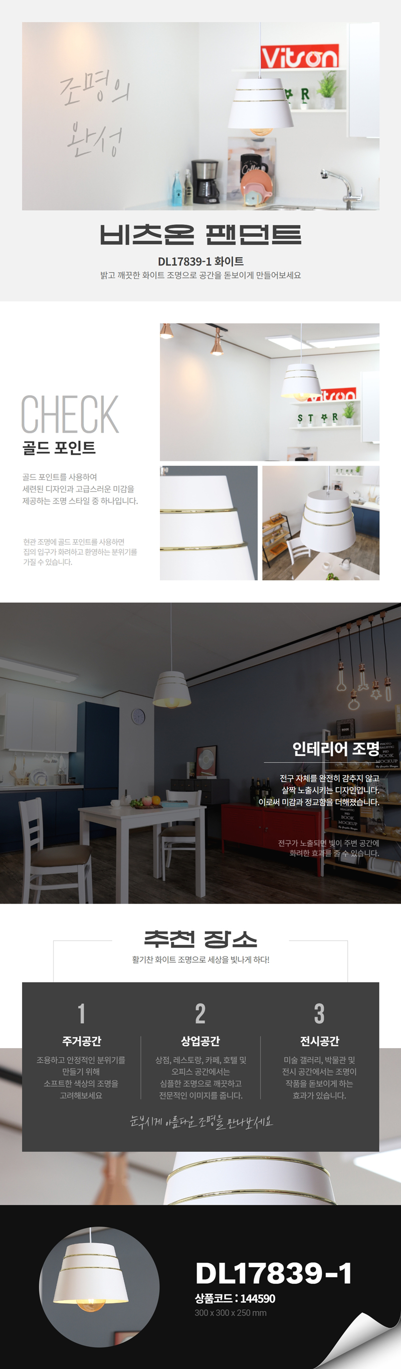 | 품명 및 모델명 | 팬던트 / 1등 DL17839-1 화이트 |