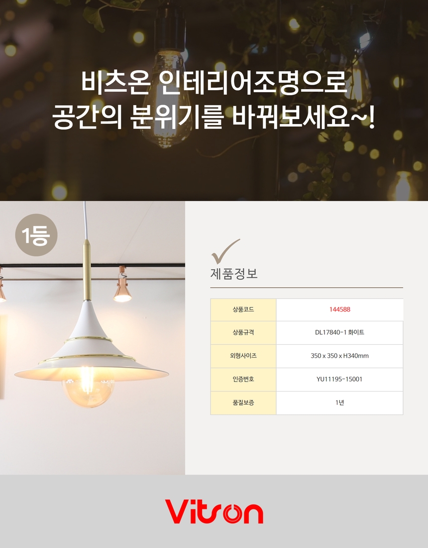 | 품명 및 모델명 | 팬던트 / 1등 DL17840-1 화이트 |