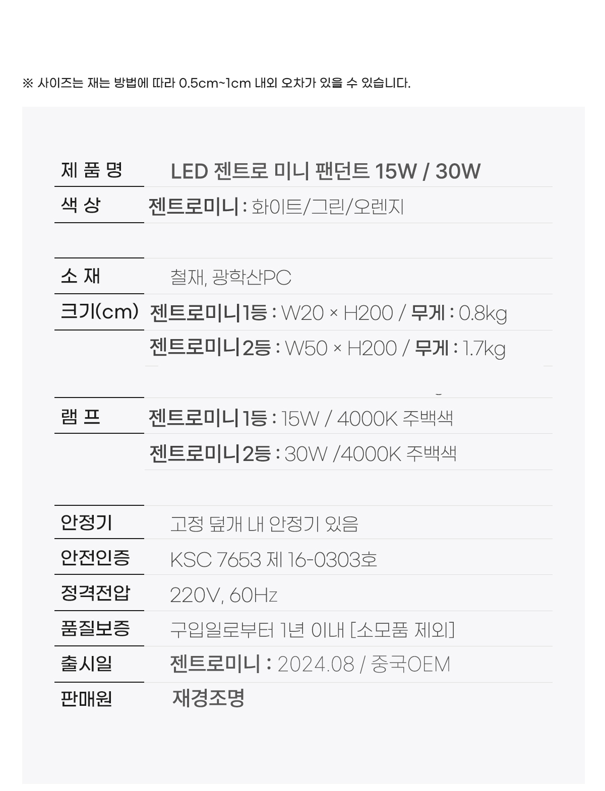 • 제조사 (수입품의 경우 수입자를 함께 표기) 재경전기조명 협력사