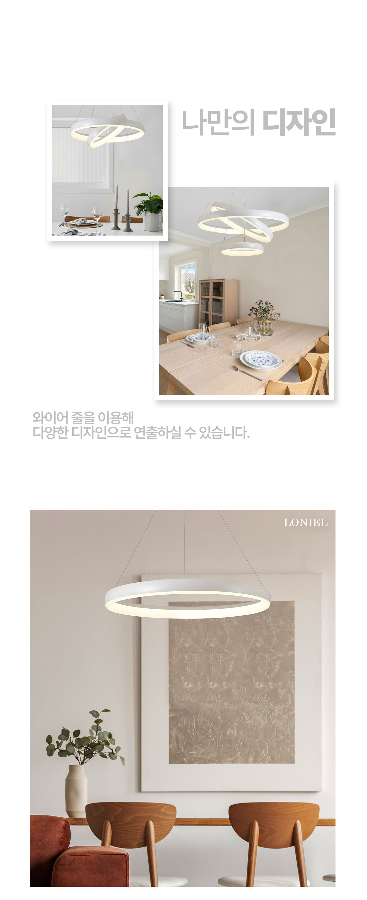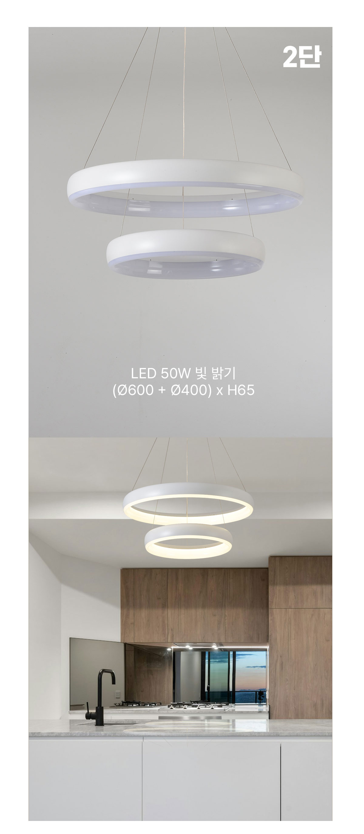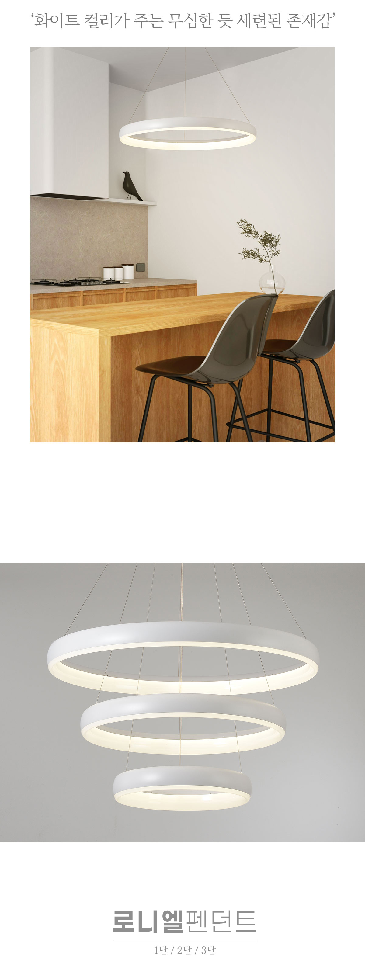 LED 로니엘 팬던트 2단 50W 원형 더블 링 라인 천장 식탁등 조명 무드 포인트 인테리어