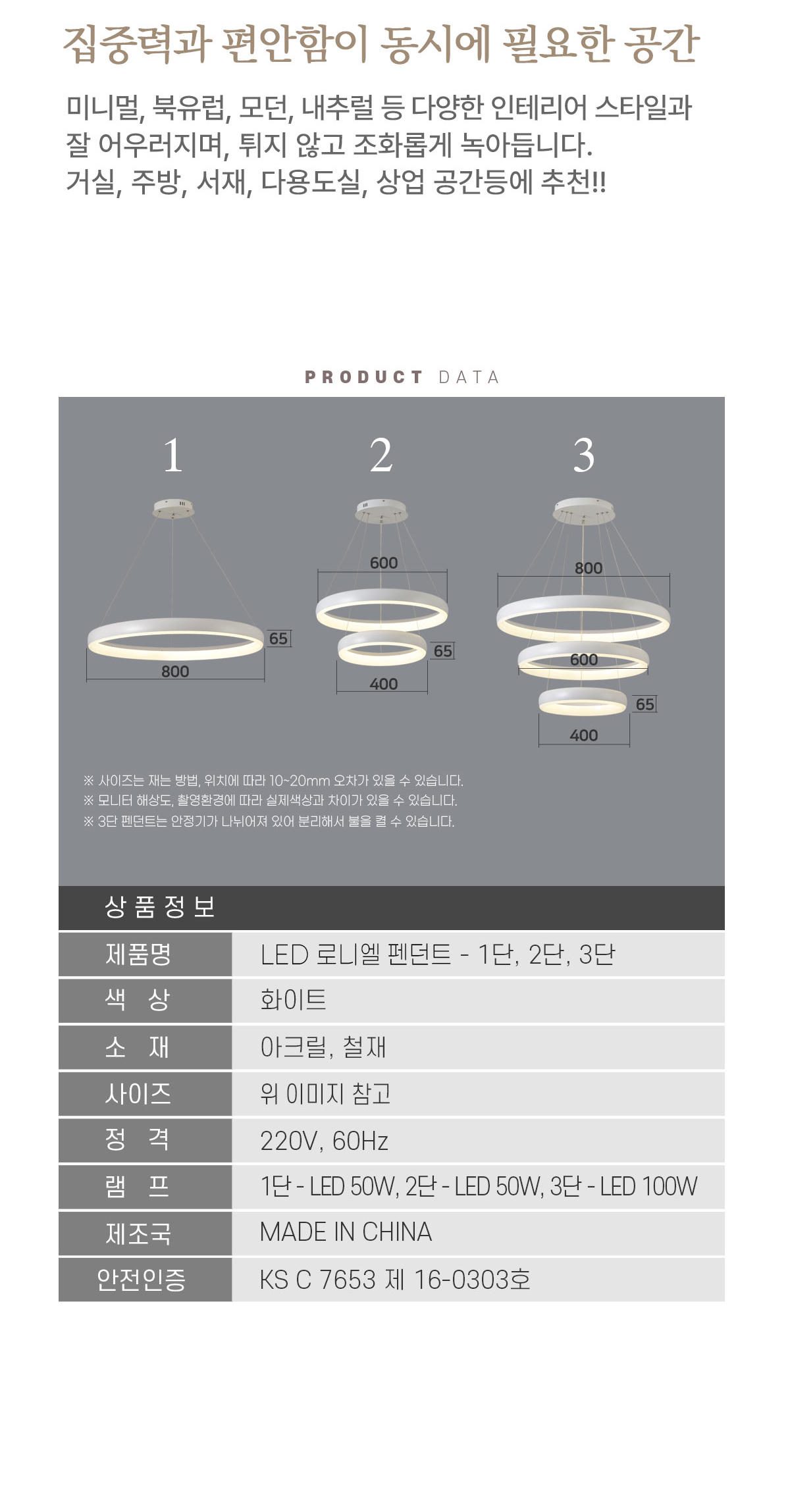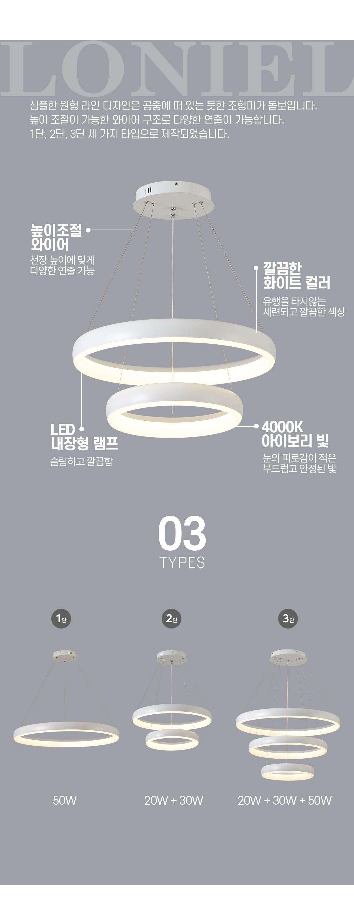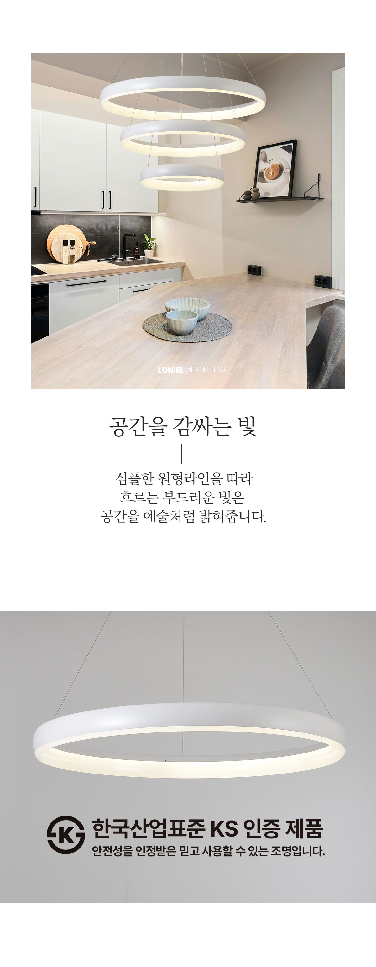LED 로니엘 팬던트 2단 50W 원형 더블 링 라인 천장 식탁등 조명 무드 포인트 인테리어