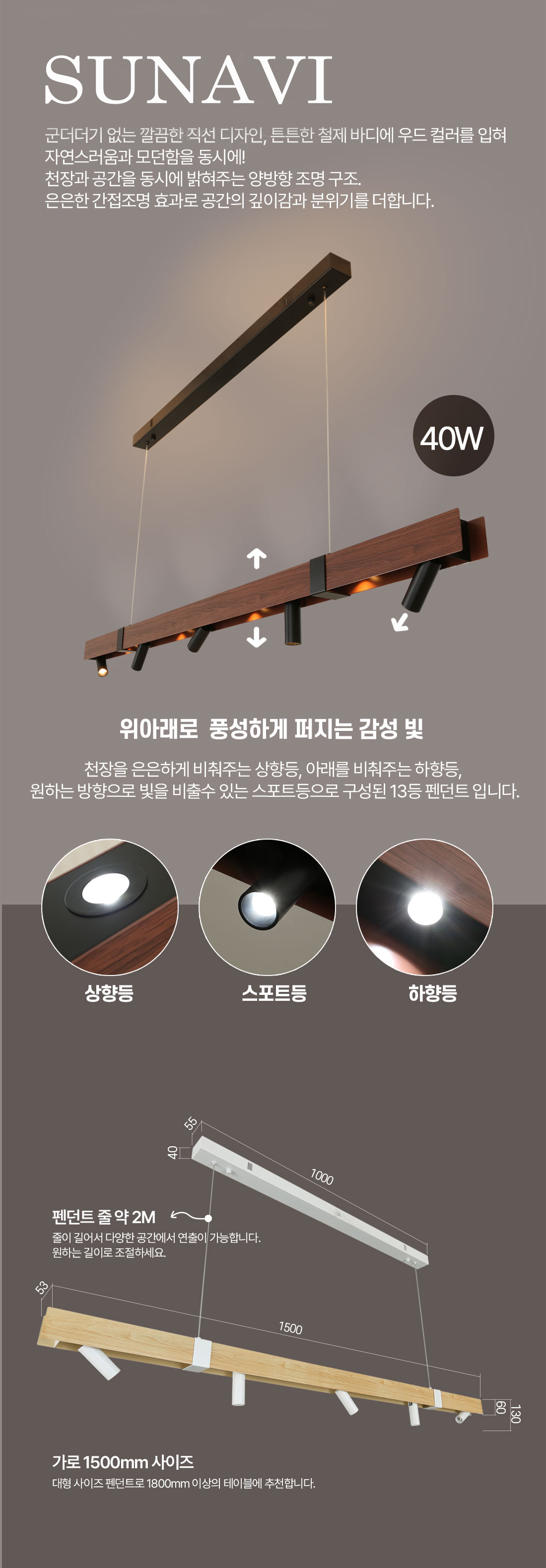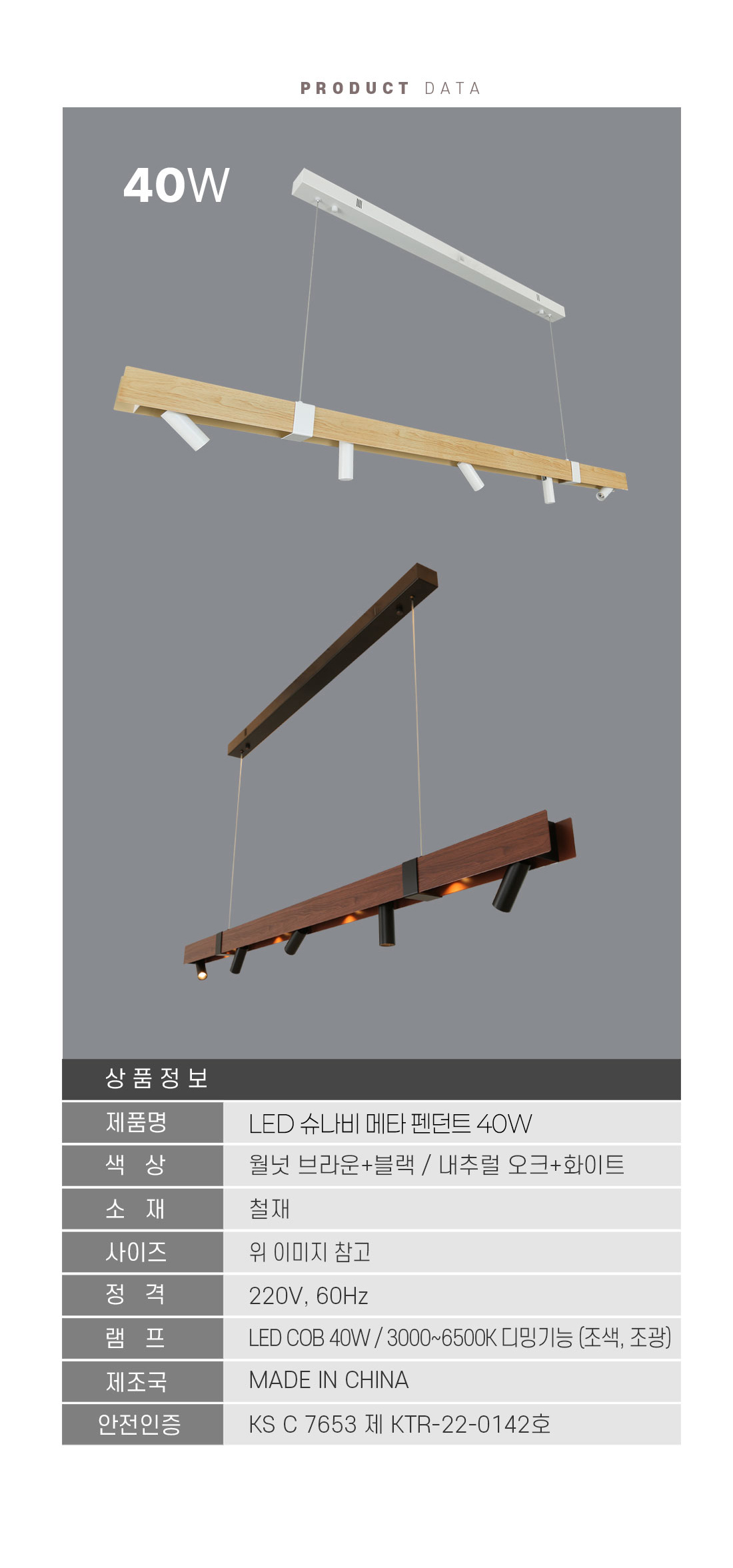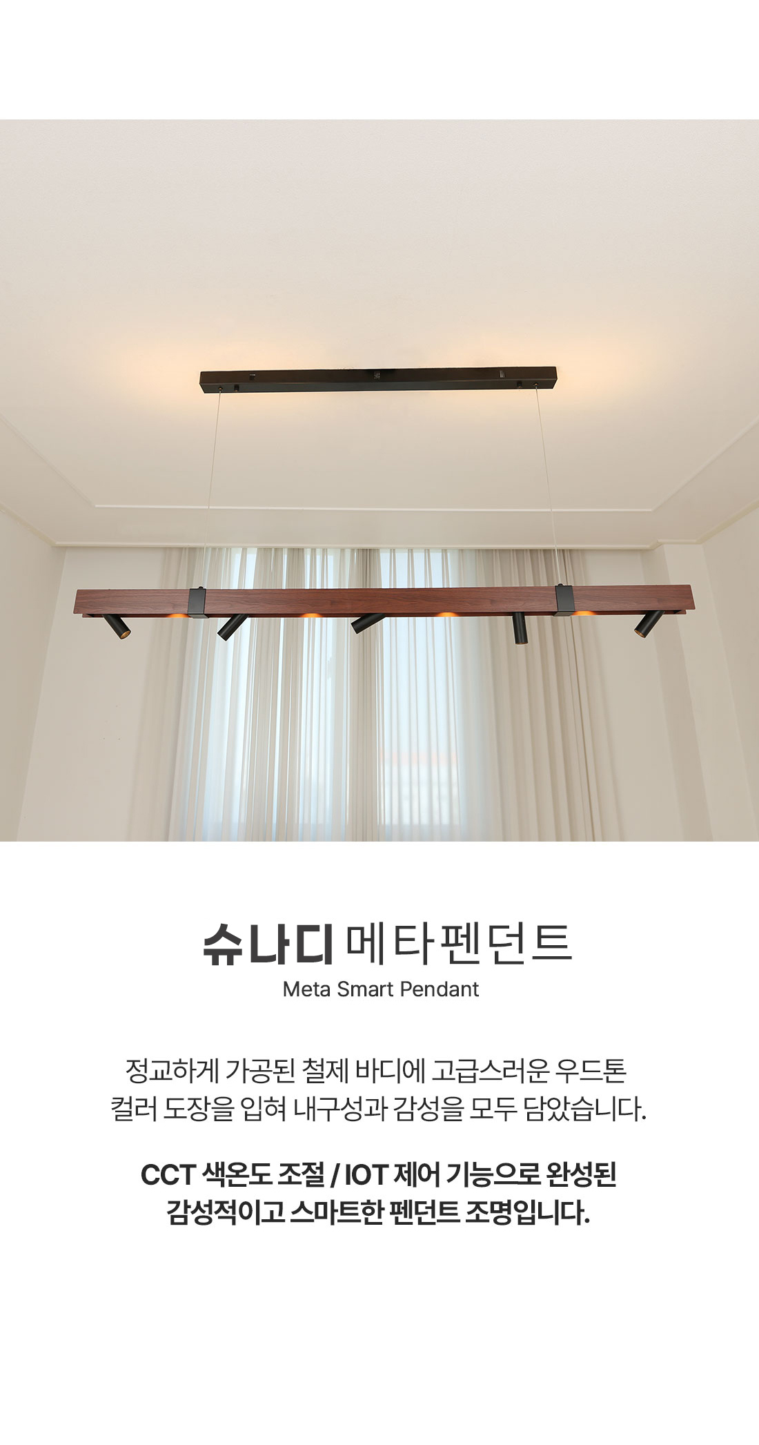 LED 슈나비 메타 펜던트 40W (CCT IOT 기능) 디밍 스마트조명 식탁등 주방등 엣지등 팬던트 우드 월넛