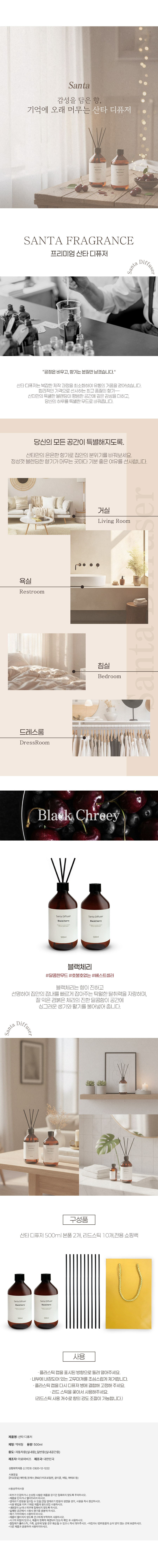 산타 대용량 실내 거실 화장실 방향제 디퓨저 블랙체리향 500ml 2개