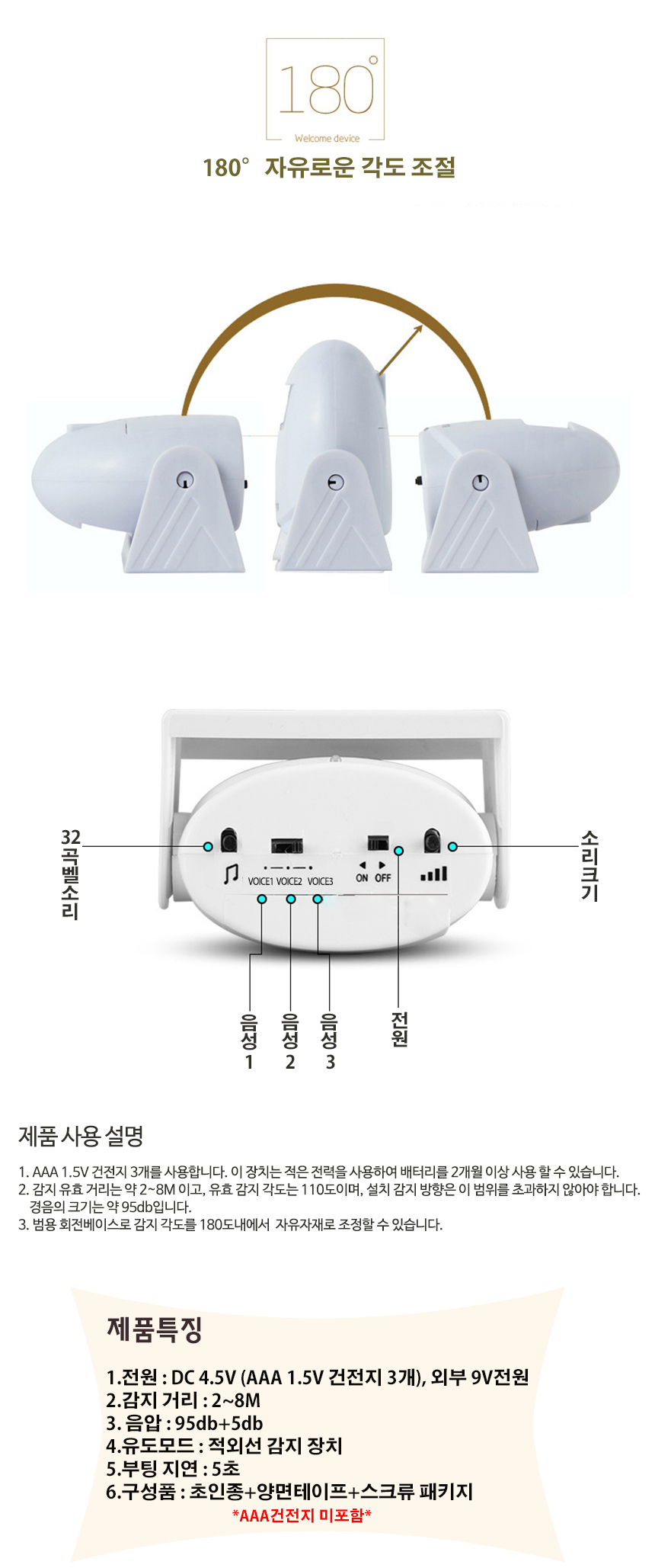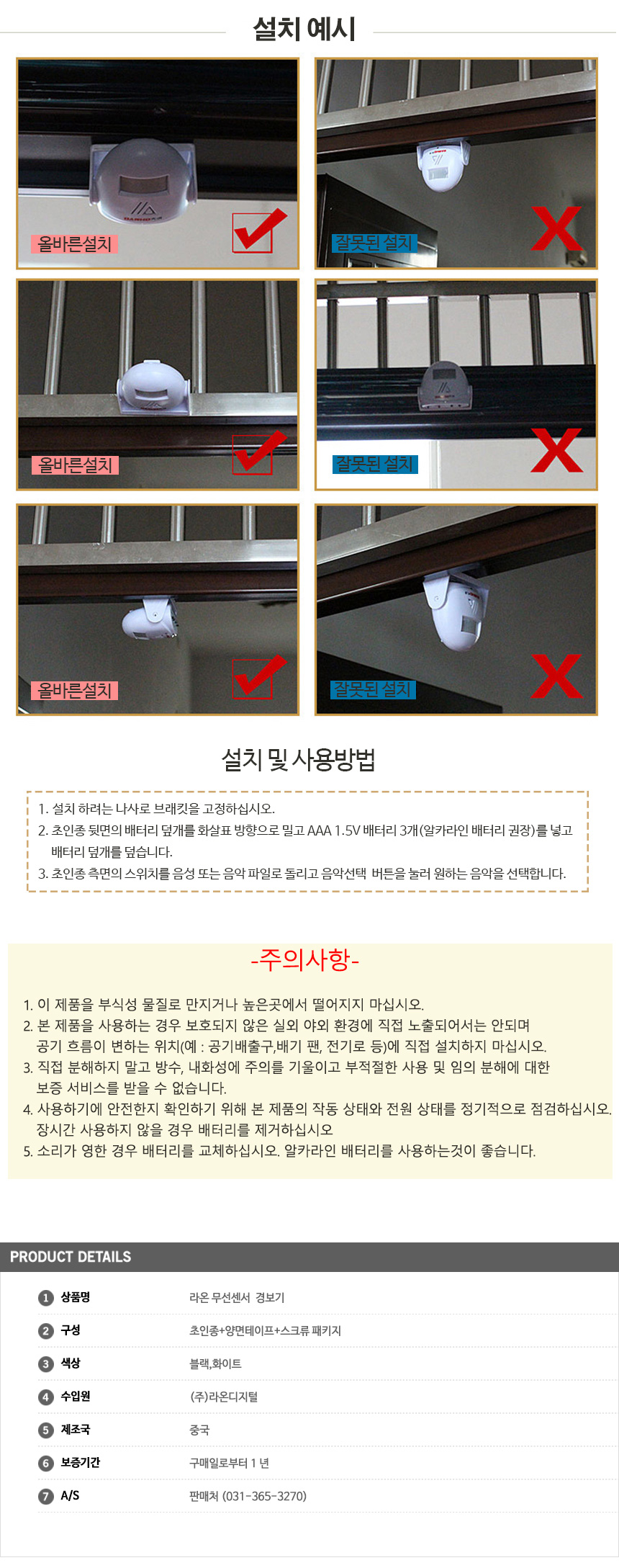 무선도어벨/감지센서/차임벨/초인종/호출/경보기