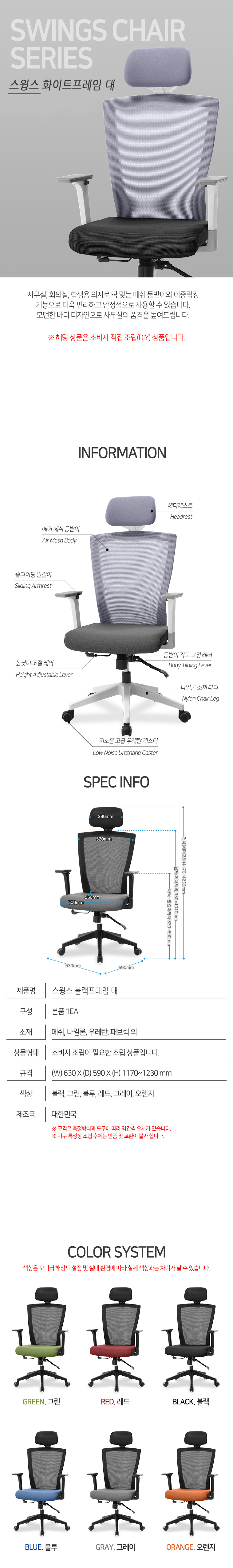 스윙스 의자 블랙 사무용 사무실 회의실 이동의자 메쉬의자
