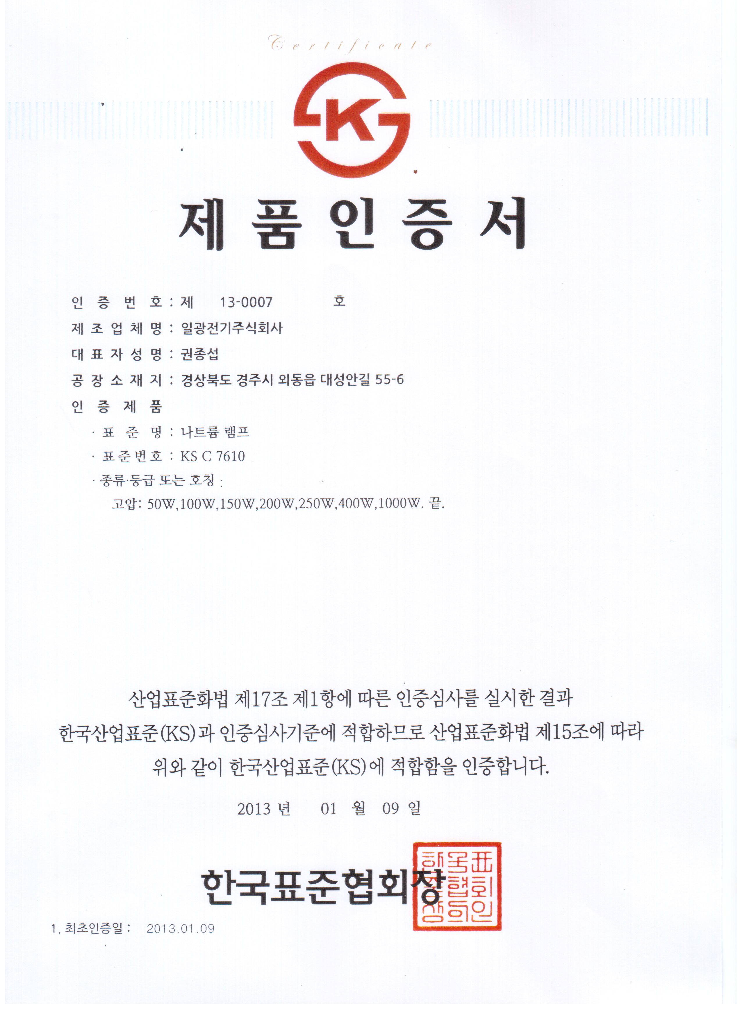 | 품명 및 모델명 | 나트륨 램프/100W E39 KS인증 |