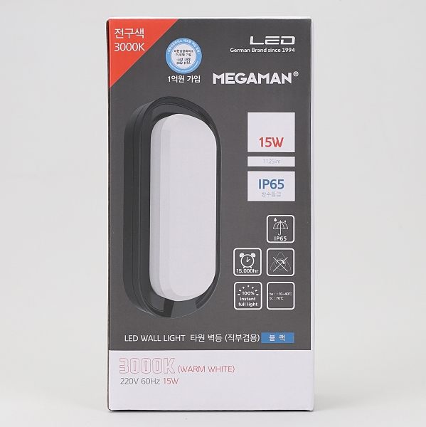 | 품명 및 모델명 | 벽등 LED 직부겸용 MEGA / 타원 15W 전구 블랙 IP65 KS |