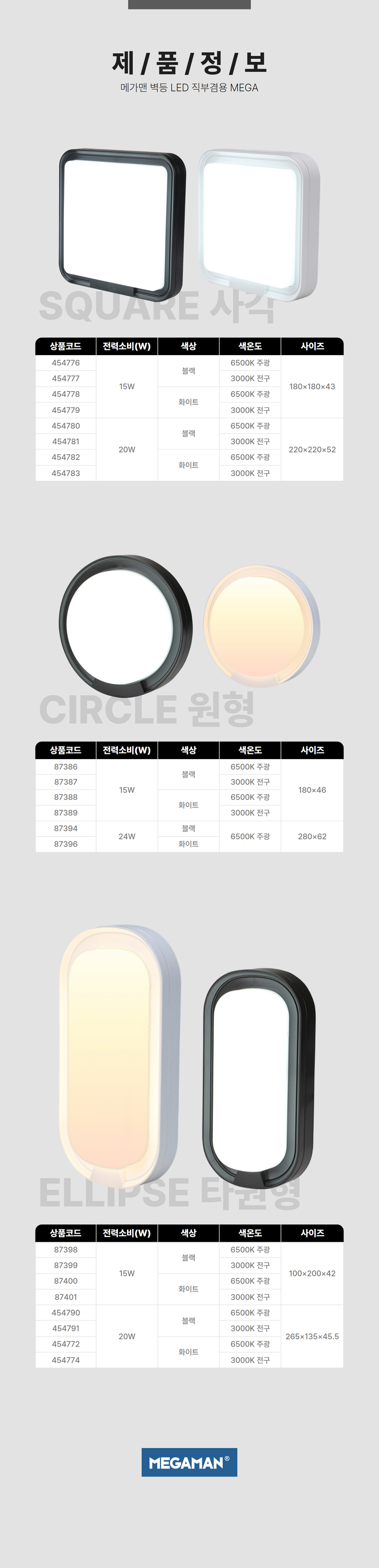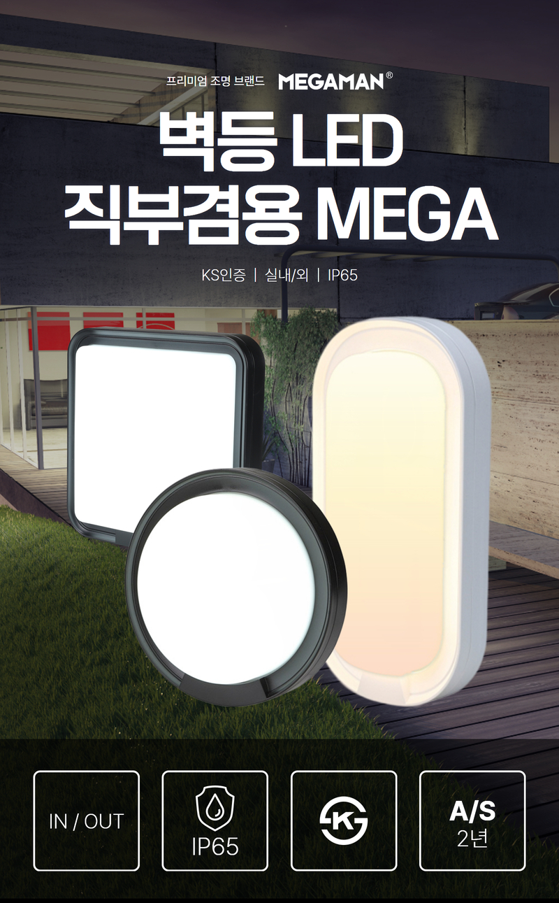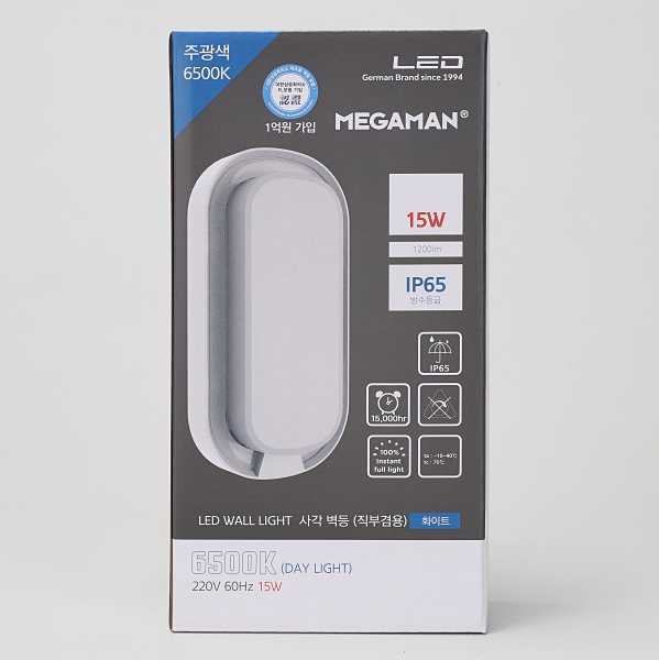 | 품명 및 모델명 | 벽등 LED 직부겸용 MEGA / 타원 15W ★주광★ 화이트 IP65 KS |