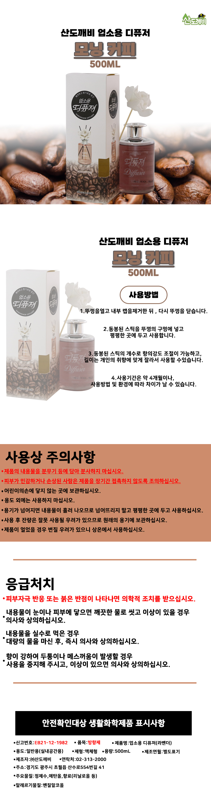 • 모델명 루미나D 업소용 디퓨저 500ml 모닝 커피