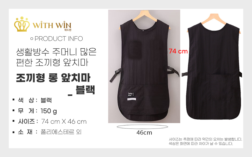 • 모델명 루미나D 앞 뒤주머니 조끼형 롱 앞치마 생활방수 어린이