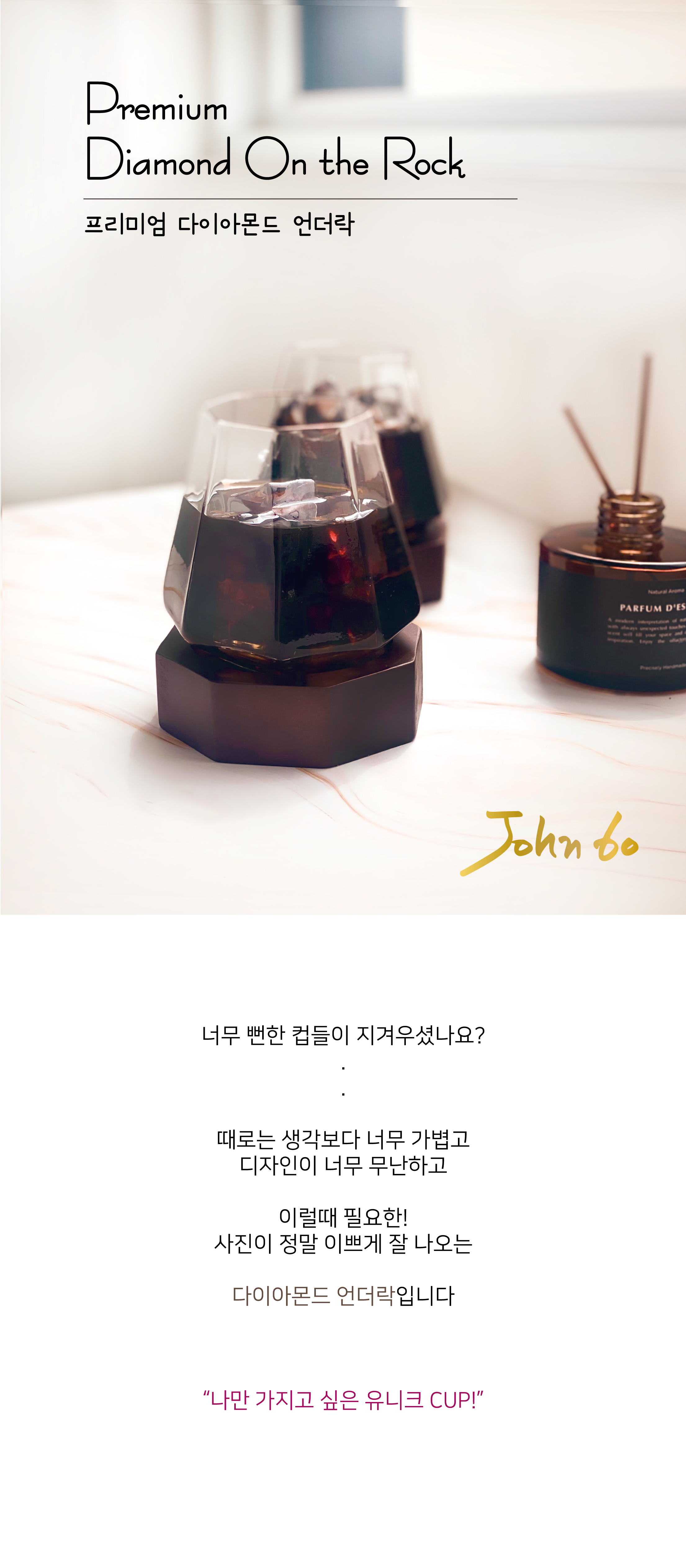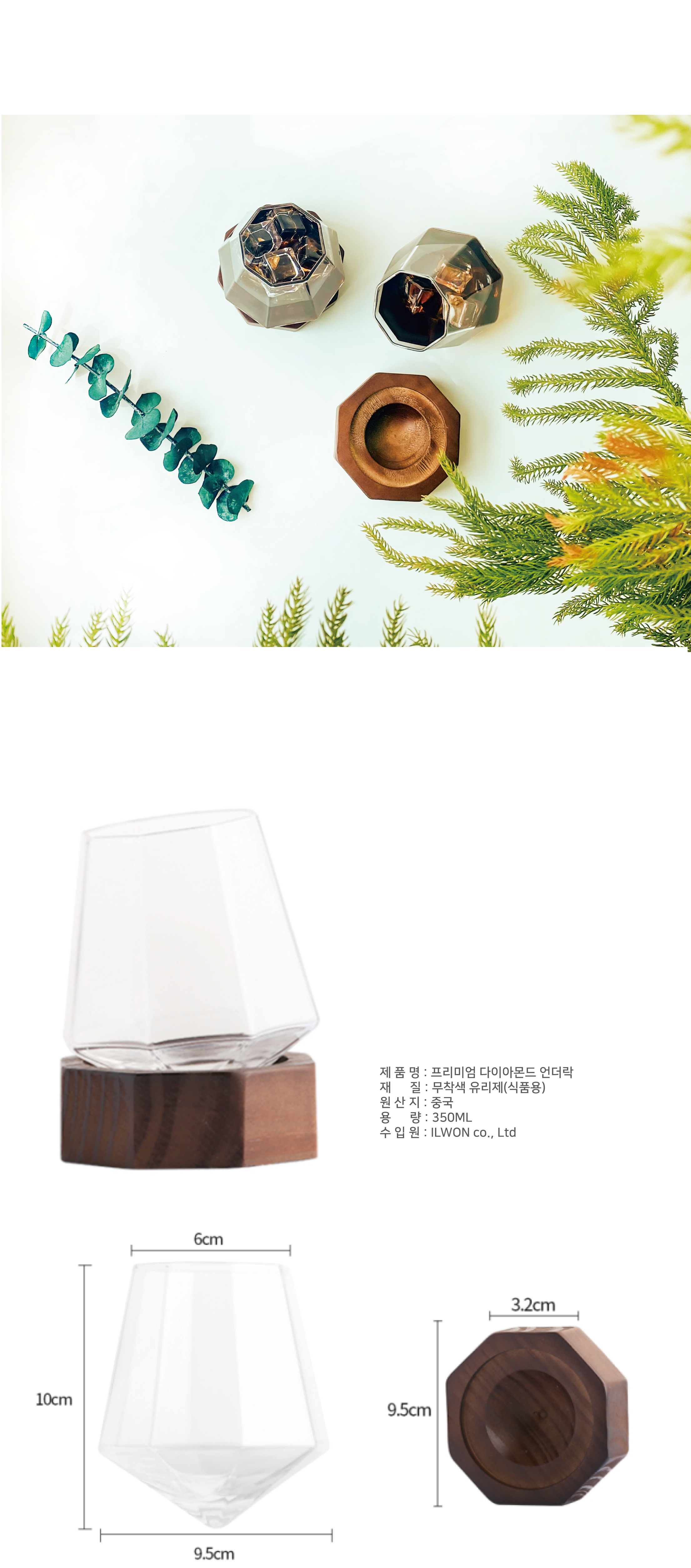 홈데코 다이아몬드 언더락+받침대 (커피잔 위스키잔 양주잔 사용가능)
