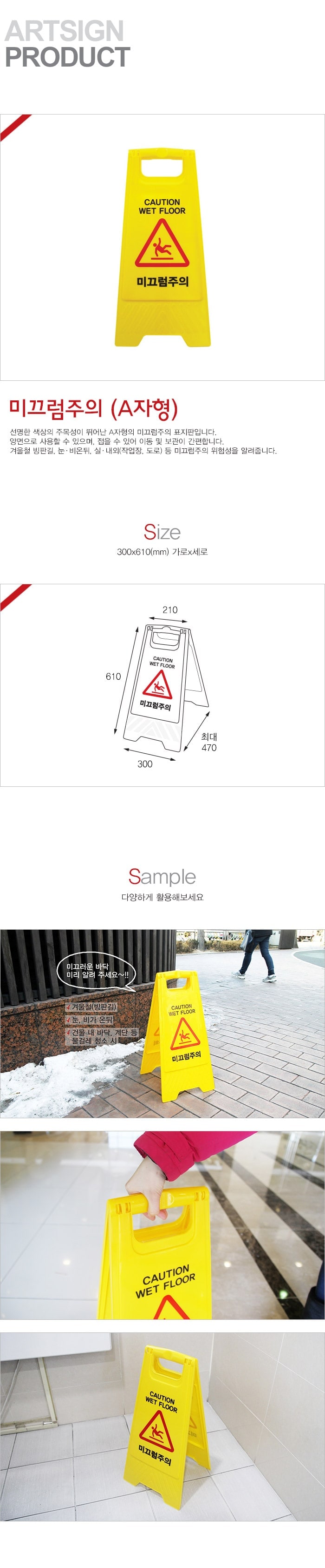 미끄럼주의 A자형 미끄럼사고예방 머리주의표지판 미끄럼주의입간판 미끄럼표지판