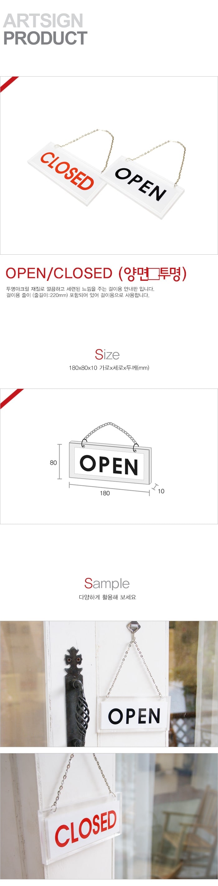 아크릴 OPEN팻말 가게오픈클로즈 OPENCLOSE OPEN사인