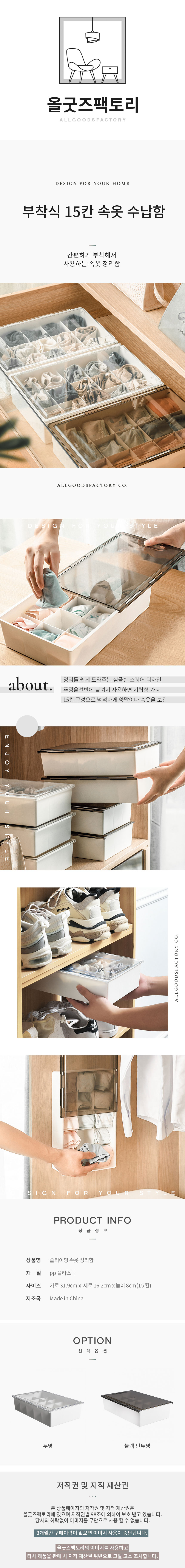 슬라이딩 15칸 여성용 양말 속옷 보관함 투명 정리대 케이스