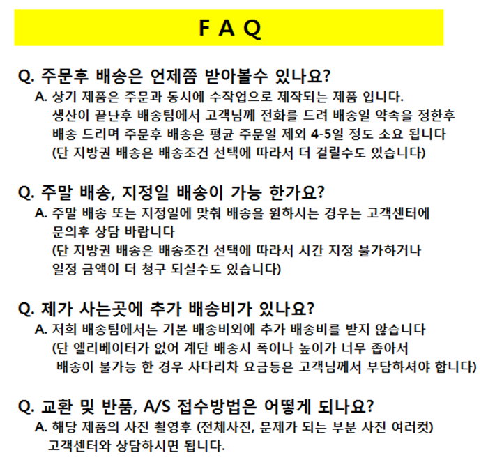 구매자 단순변심 : 상품 수령 후 7일 이내 (구매자 반품배송비 부담)