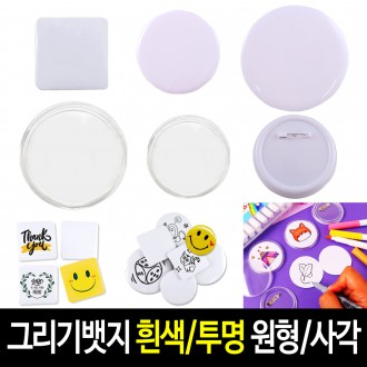 그리기뱃지 뱃지만들기 대용량 (100개입) 원형/사각 무지 공백뱃지