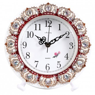 무소음 탁상시계 크리스털보석 장미 월넛 T-107 RAS