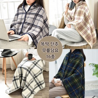 똑딱 단추 체크 담요 극세사 어깨 숄 캠핑 체크 겨울 사무실 블랭킷 이불 카페 휴대용